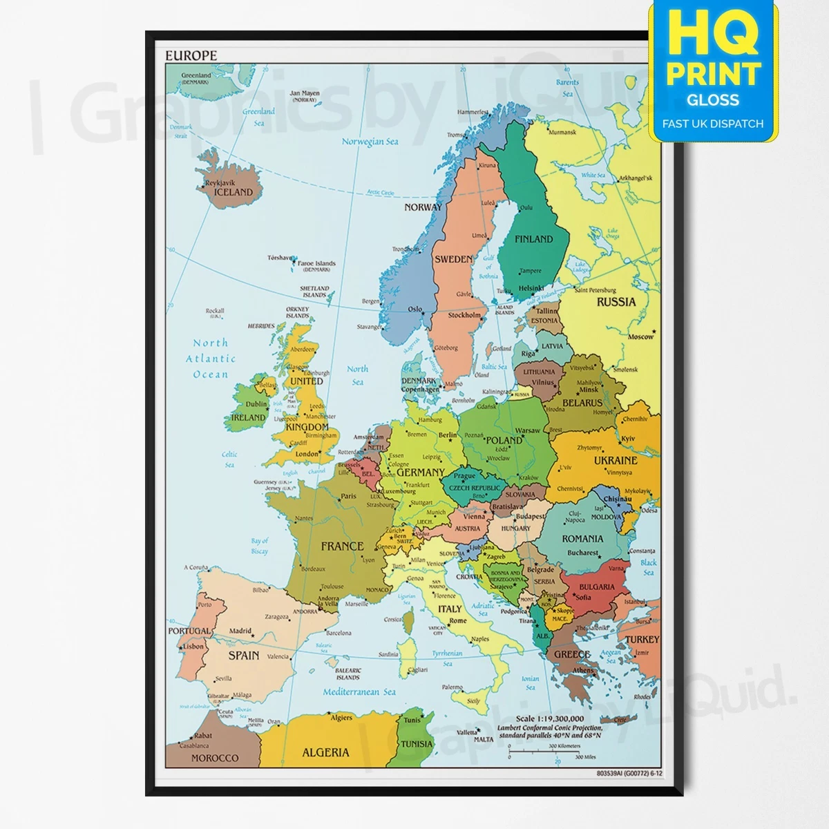 Map of Europe Wall Art Giant Poster A5 A4 A3 A2 A1 HUGE Sizes | eBay